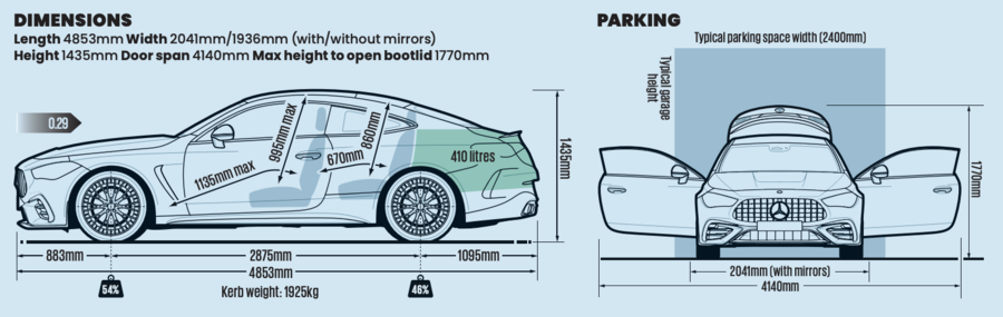 Although you wouldn’t pick a two-door coupé if practicality was a priority, the CLE does reasonably well in that respect, so long as you avoid the plug-in hybrid CLE 300e. Shorter adults and children can just about sit in the cosy back seats, which can be folded down to expand an already generous boot that is equipped with various hooks and some underfloor space.