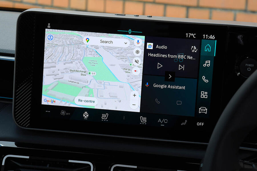 The layout impresses too. The two higher grades – Techno and Iconic, which sit above the entry-level Evolution – feature a large, crisp, digital instrument binnacle that merges into the central touchscreen, but in a way that doesn’t feel overbearing. We won’t repeat ourselves too much because our comments in the Renault 5 road test also apply here, but it suffices to say the blend of physical and digital switchgear is well conceived. This is among the more intuitive cabins in the class when it comes to simple commands – skipping a track or turning up the fan speed, for instance.